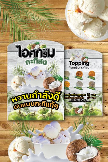 SuPhanSa / ใช้บริการออกแบบเมนูไอศรีม และผลิตเมนูสติ๊กเกอร์ PP Board